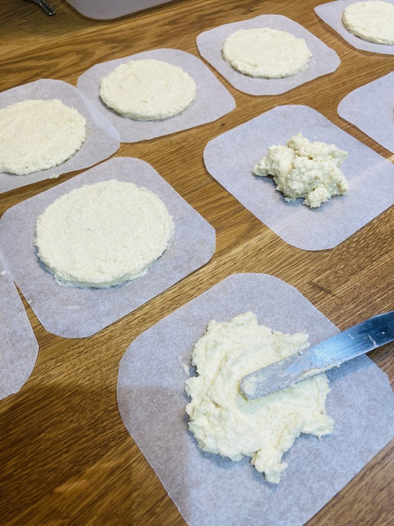 ひとつひとつ生地を計量し、小さめのパレットナイフで成形しています。